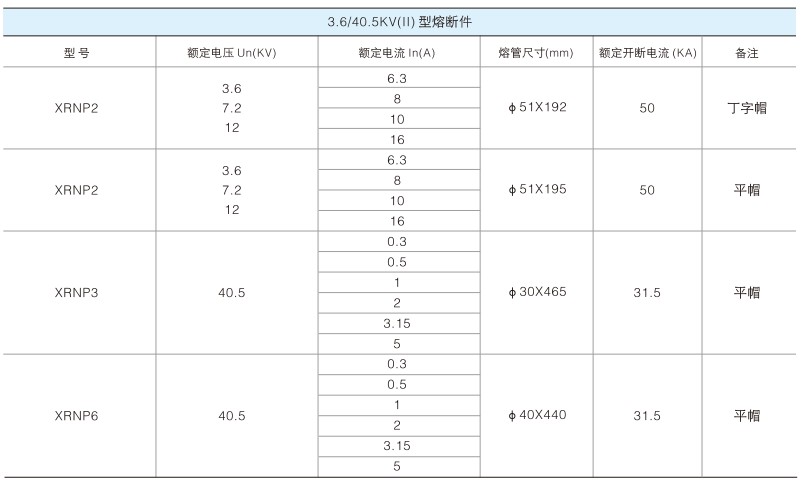 XRNP1-40.5/-31.5 40.5(35) 0.2、0.5、1.2、3.15 50