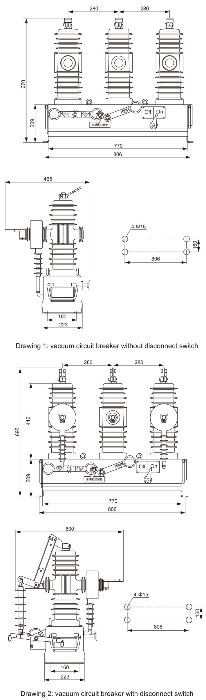 オプションの統合絶縁スイッチ: 絶縁スイッチが必要な場合は、ZW43 シリーズ屋外真空サーキット ブレーカーを追加できます。追加の部品を別途購入する必要はありません。